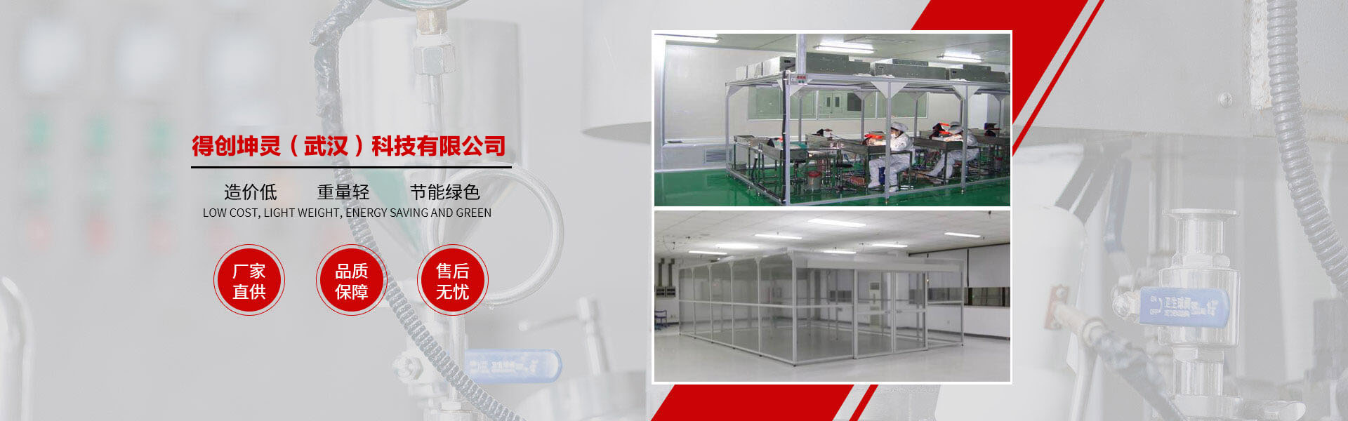 得創(chuàng)坤靈成立于2010年6月,專業(yè)從事食品無菌車間、GMP車間、電子無塵車間、食品醫(yī)藥包裝車間、醫(yī)療器械車間、潔凈棚、土建工程簡易房、無菌實驗室、組合式空調(diào)機(jī)組等項目的設(shè)計、裝修、施工、調(diào)試、安裝為一體的凈化工程公司,承接十萬級、萬級、千級、到百級的凈化車間、無塵車間、無塵室、潔凈廠房、潔凈室工程的改造與建設(shè)。 作為中國潔凈室系統(tǒng)工程及設(shè)備制造高品質(zhì)、專業(yè)化的代表,得創(chuàng)秉承“追求完美品質(zhì)、超越客戶期望”的理念,通過對客戶生產(chǎn)環(huán)境的深入研究及多年的工程實踐,積累了豐富的潔凈室空調(diào)凈化系統(tǒng)及節(jié)能優(yōu)化設(shè)計、項目管理及施工經(jīng)驗,綜合實力始終處于業(yè)界領(lǐng)先地位。 公司資質(zhì)齊全,包括裝飾裝修工程二級、機(jī)電安裝二級、電子與智能化二級、消防工程二級、環(huán)保工程二級;擁有多名高級工程師及暖通設(shè)計工程師,有著醫(yī)藥凈化工程設(shè)計、食品無菌食設(shè)計、電子無塵車間設(shè)計經(jīng)驗,長年與設(shè)計院有著良好的合作和溝通關(guān)系。公司多年專業(yè)從事凈化工程安裝業(yè)務(wù),擁有數(shù)次在全國各地有著豐富安裝經(jīng)驗的安裝工程隊伍,在大型管道及彩板安裝方面有著豐富的安裝經(jīng)驗和先進(jìn)的現(xiàn)場管理體系。 公司產(chǎn)品廣泛服務(wù)于電子、光電、微電子、光纖光纜、精密機(jī)械、生物制藥、食品飲料、航空航天等眾多領(lǐng)域。我們始終以技術(shù)為中心、以創(chuàng)新為動力、以服務(wù)為己任。以一流的產(chǎn)品質(zhì)量,良好的售后服務(wù),參與到激烈的市場競爭中來,贏得客戶的支持與信賴。 隨著公司的持續(xù)發(fā)展、隊伍的日益壯大,公司將一如既往地堅持"以客戶為中心"的理念,在激烈的市場競爭中迎頭奮進(jìn),以"創(chuàng)一流品牌、建一流企業(yè)"的品牌拓展戰(zhàn)略,面對機(jī)遇與挑戰(zhàn),開創(chuàng)一片嶄新的天地! 品質(zhì)成就夢想、秉承口碑相傳、得創(chuàng)凈化……